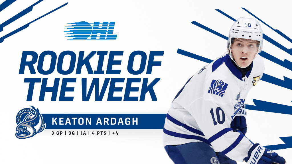 Brampton Steelheads forward Keaton Ardagh is the OHL Rookie of the Week, scoring three times while adding an assist as the Steelheads collected five of a possible six points.