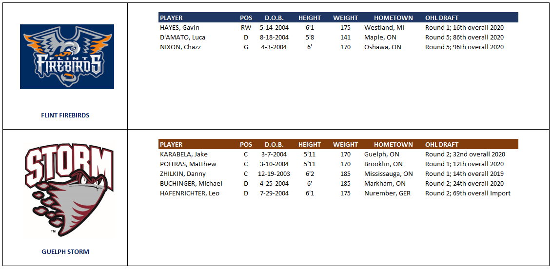 TALLEST PLAYER: Trent Swick (Kitchener); Sam Alfano (Peterborough); Matyas Sapovaliv (Saginaw); Landon Hookey (Sault Ste Marie) all stand 6 foot 4 inches.