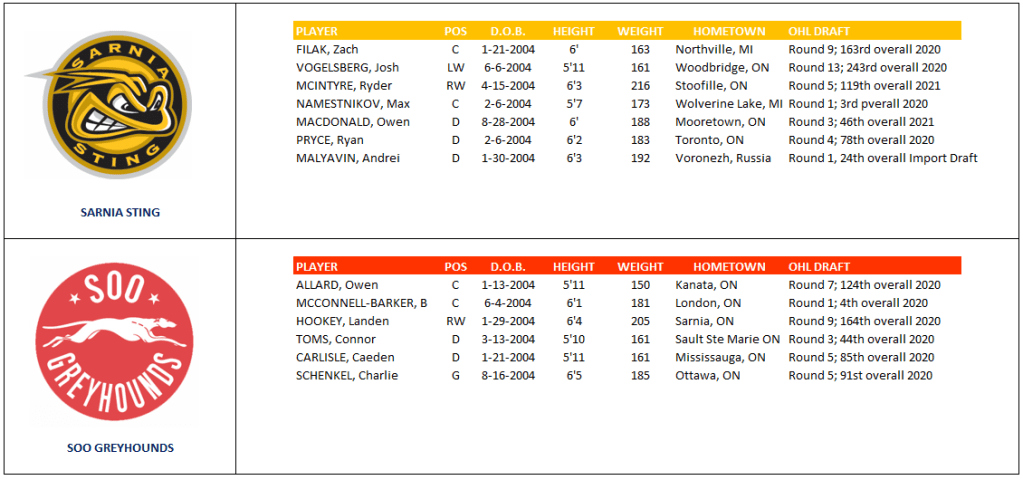 YOUNGEST PLAYER: Owen MacDonald (Sarnia) born August 28, 2004