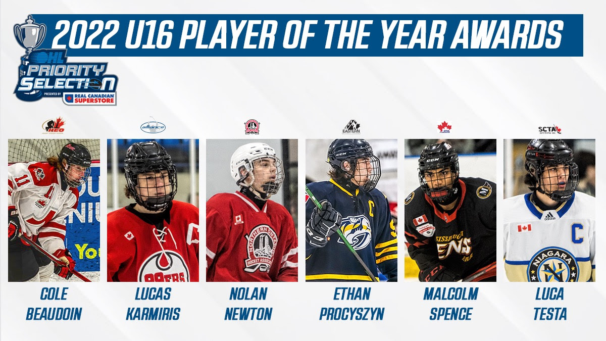 This year’s winners include Lucas Karmiris of the Brantford 99ers (ALLIANCE), Malcolm Spence of the Mississauga Senators (GTHL), Cole Beaudoin of the Nepean Raiders (HEO), Nolan Newton of the Sudbury Nickel Capitals (NOHA), Ethan Procyszyn of the North Central Predators (OMHA – ETA) and Luca Testa of the Niagara North Stars (OMHA – SCTA).