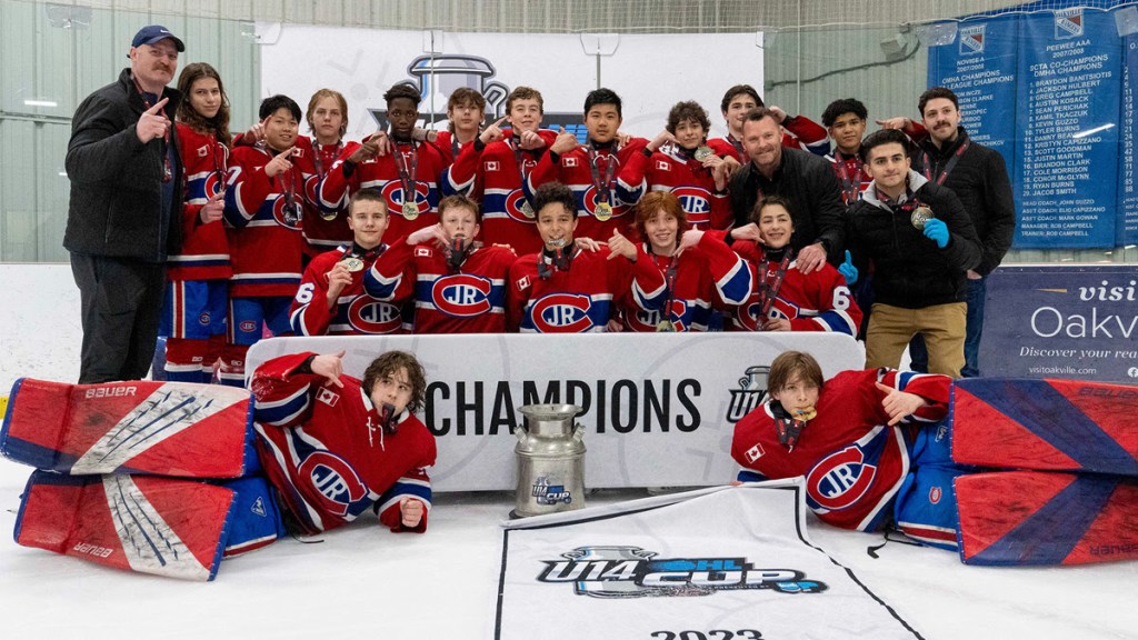 Oakville, Ont. – The Toronto Jr. Canadiens have twin OHL Cup titles in 2023. After the U16 squad hoisted the OHL Cup on Apr. 3rd at the Mattamy Athletic Centre, the U14 Jr. Canadiens bested the Barrie Jr. Colts on Sunday at Joshua’s Creek Arena, being crowned champions of the 2nd annual event presented by Dairy Farmers of Ontario and hosted by the Ontario Minor Hockey Association.