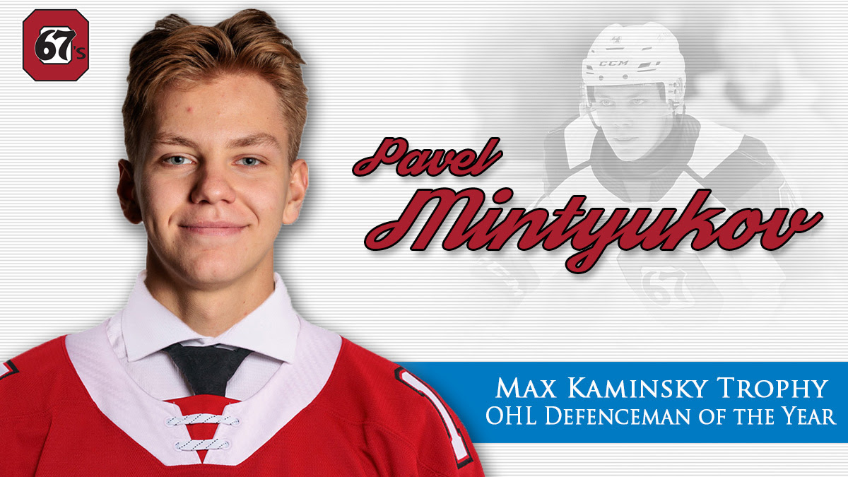 Mintyukov led OHL blueliners with 88 points including 24 goals and 64 assists along with a plus/minus rating of plus-33, joining the 67’s midway through the season to help them secure the Hamilton Spectator Trophy as the league’s regular season champions.