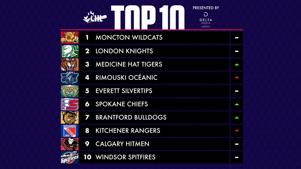 Coming into the postseason on a 15-game winning streak, the longest active streak in the CHL, the Moncton Wildcats of the Quebec Maritimes Junior Hockey League (QMJHL) close out the 2024-25 campaign as the No.1-ranked team in the CHL. The Wildcats led all teams across the CHL in regulation losses (9), points percentage (.844), goal differential (+150), penalty kill percentage (86.4%), and goals allowed per game (2.25). Right behind them is the London Knights of the Ontario Hockey League (OHL), who come in at No. 2. No team in the CHL won more games (55) or put up more points (112) than the Knights this season, as London finished 2024-25 as the CHL’s highest-scoring club (4.78 goals per game). Meanwhile, rounding out the top three is the Medicine Hat Tigers of the Western Hockey League (WHL), who enter the 2025 WHL Playoffs presented by Nutrien having won 10 games in a row. Dating back to January 1, the Tigers have earned 26 victories in 31 games (26-3-1-1), scoring at a near five-goals-per-game pace over that stretch (4.94).
