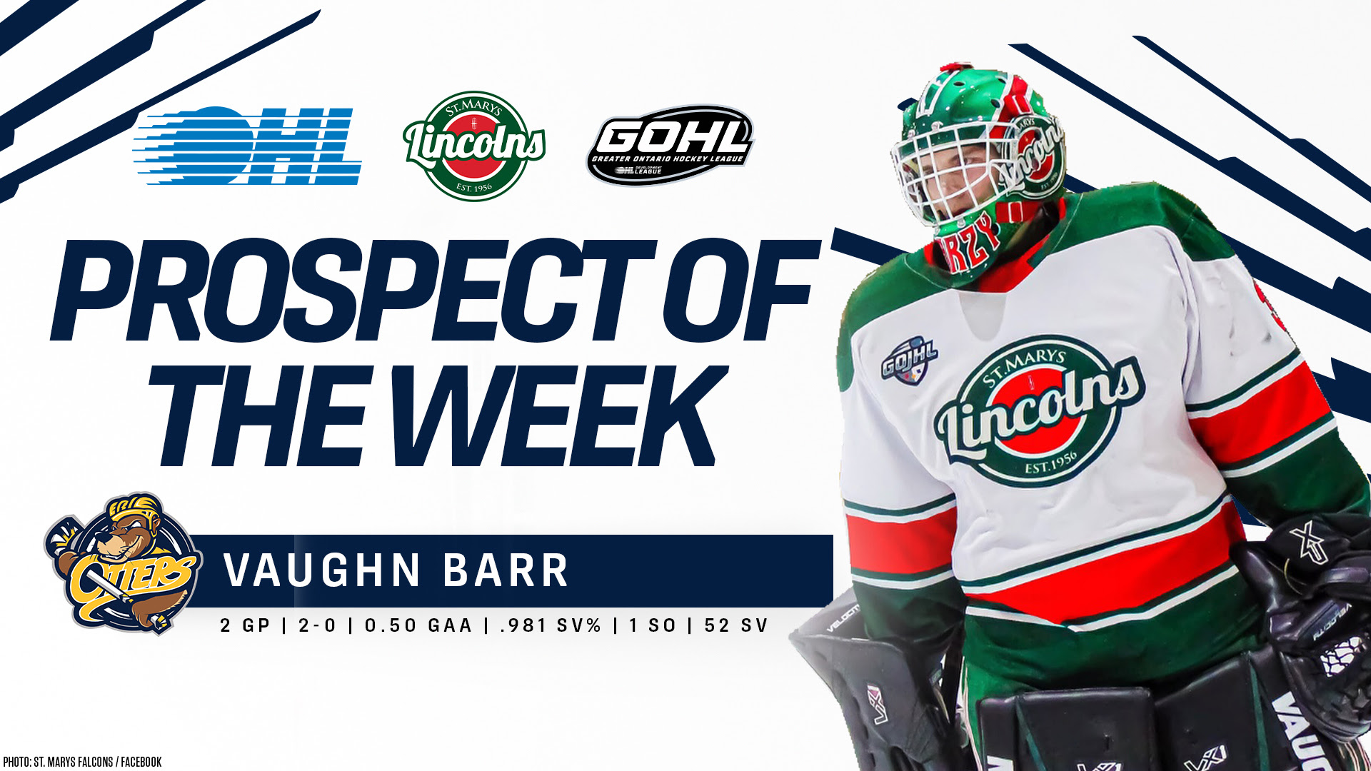 Erie Otters prospect Vaughn Barr of the St. Marys Lincolns is the GOHL Prospect of the Week, going 2-0 with a 0.50 goals-against average, .981 save percentage and one shutout.