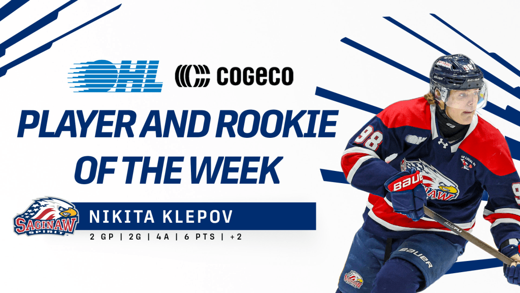NHL Draft eligible Saginaw Spirit forward Nikita Klepov is both the Cogeco OHL Player of the Week as well as the OHL Rookie of the Week, recording six points (2-4–6) in just two games.
