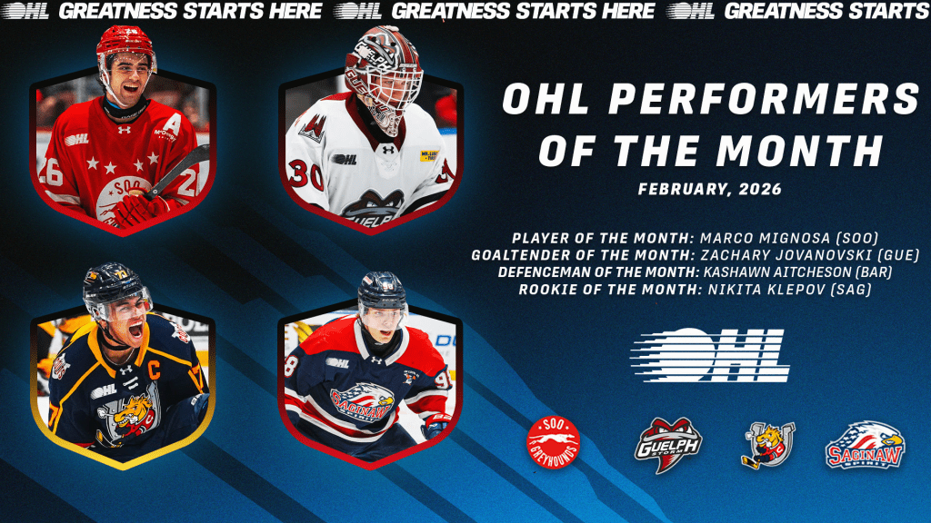 TORONTO (Sunday, March 1, 2026) – The Ontario Hockey League (OHL) today announced Top Performers of the Month for February.
