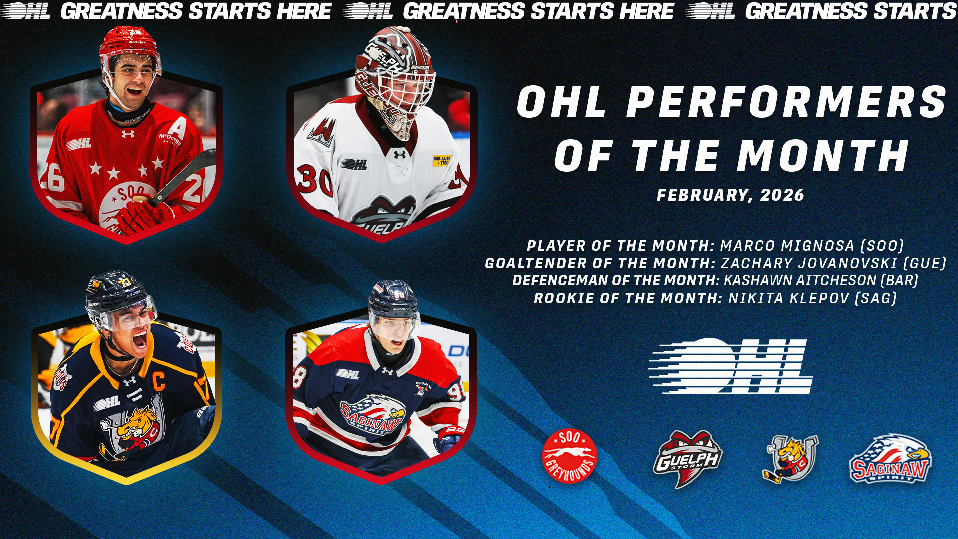TORONTO (Sunday, March 1, 2026) – The Ontario Hockey League (OHL) today announced Top Performers of the Month for February.