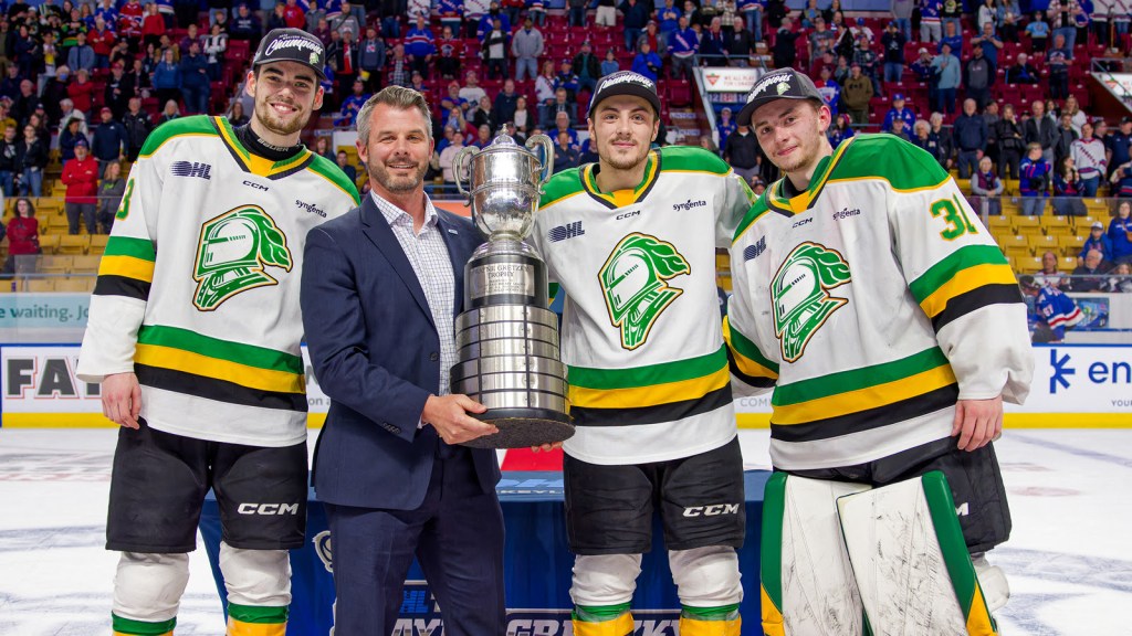 The Knights become the first team in OHL history to win three consecutive Wayne Gretzky Trophies, an award first introduced with the advent of the league’s conference system in 1998-99. They join the Soo Greyhounds in the history books as the first team since 1993 to advance to three consecutive OHL Championship Series.